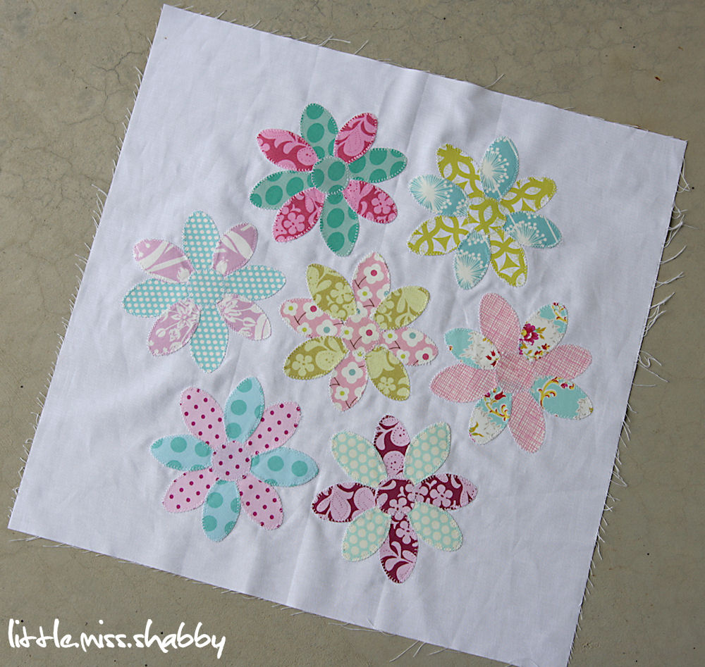 This block turned out a lot different than I had originally planned.  But, I thought it was cute–you know what’s nifty…each flower is made using just two pieces.